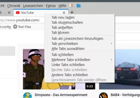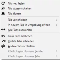 Es fehlt das Icon bei "Tab stummschalten" sowie der gesamte Eintrag "In Tab-Umgebung öffnen"
