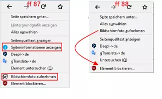 Was ich auch angepasst habe per userChrome.css war im Seitenkontextmenü der Eintrag für "Seiteninformationen anzeigen" (da habe ich ein Icon vor gesetzt)