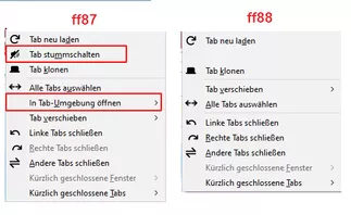 Ich habe fest gestellt, dass mit Firefox 88 mein mit userChrome.css angepasstes Tab Kontextmenü einige Fehler aufweist.