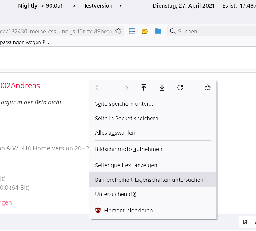 Wenn es um die Barrierefreiheit geht, die habe ich auch nur bis zur Beta 89, im Nightly ist die nicht mehr drin.