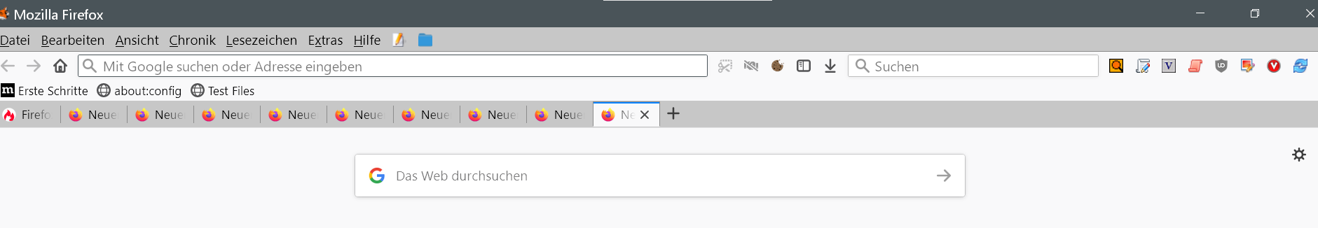Nach dem Update eben auf FF88 ist nun meine Tableiste wieder ganz nach oben verschoben und ich hab beim öffnen eines neues TABs merkwürdige Lücken zwischen den TABs und diese werden immer größer.