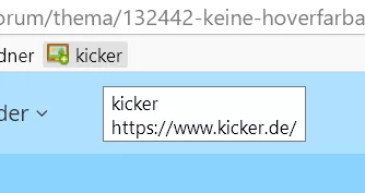 mir ist heute aufgefallen, dass plötzlich bei den Lesezeichen auf der Symbolleiste keine Hoverfarbe mehr aktiv wird, wenn ich mit dem Mauszeiger darüber gehe, bei denen ich per folgenden css-Eintrag das Icon geändert habe: