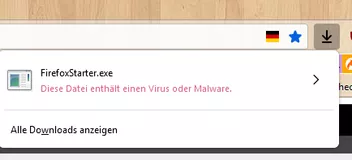 Wenn ich von der Seite https://mozhelp.dynvpn.de/dateien/index.php?path=Programme/ die Datei FirefoxStarter.exe runterlade, kommt in der Firefox 89 Beta Version der Hinweis: "Diese Datei enthält einen Virus oder Malware".....Was ist davon zu halten?