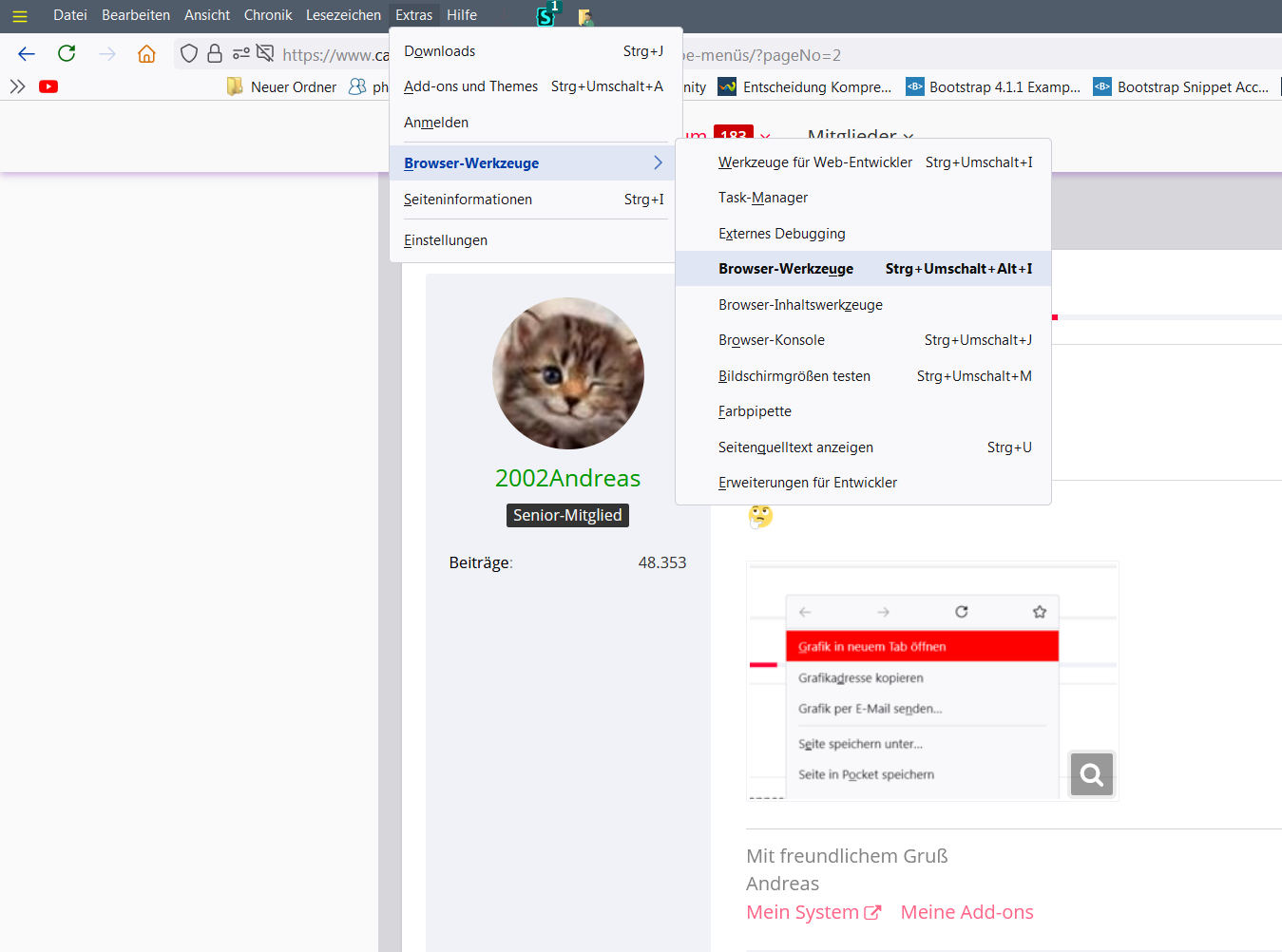 CSSmenupopup > menu:hover:not([disabled="true"]), menupopup > menuitem:hover:not([disabled="true"]), popup > menu:hover:not([disabled="true"]), descriptionpopup > menuitem:hover:not([disabled="true"]) { color: black !important; background: lightgrey !important; /* font-weight: bold ! important; */ }Damit funktioniert´s auch wie gewünscht.
