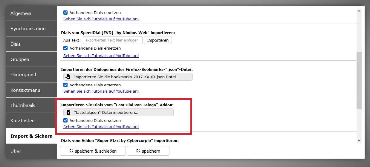 Mein Hauptproblem ist das Addon Fast Dial; natürlich habe ich mich auf das Addon eingelassen, daß gefühlt als einziges dieser Art NICHT weiterentwickelt wird. Ich habe mühsam 100e, vielleicht 1000e von Links sortiert und angeordnet, und stecke jetzt fest; weder finde ich Ersatz, daß in der Lage ist, Fast Dial Strukturen zu übernehmen, noch finde ich ein entsprechendes Backuptool, mit dem ich das 1:1 übernehmen könnte der letzte Link war FEBE - der auch nur ins Leere führte.