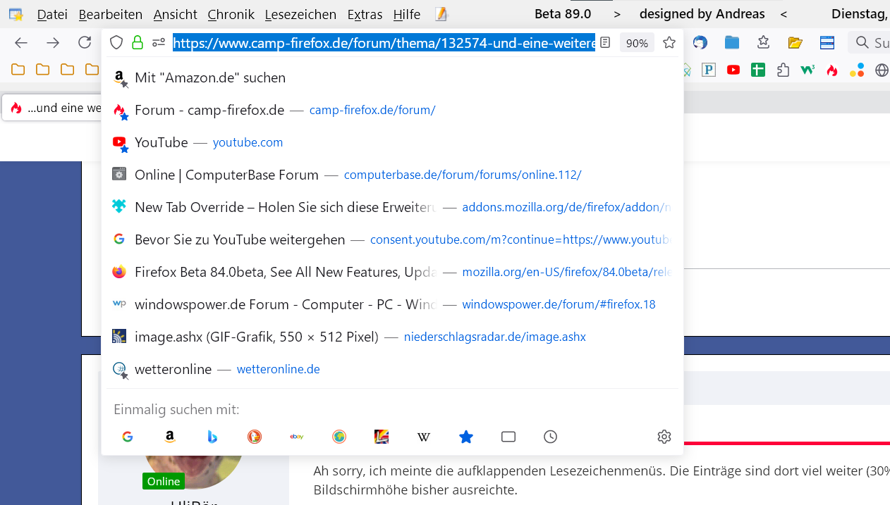 da wieder mal umfänglich an der Oberfläche "verbessert" wurde, fällt die Optik meines Firefoxes schon wieder auseinander.