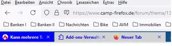 Jetzt erscheint der TAB am Seiten-Ende. Jedoch gibt es keine Möglichkeit, dass mehrere Tabs gleichzeitig geöffnet sind. Wenn ich auf "neuen Tab" klicke, dann wird eine neue Seite geöffnet, der bisher geöffnete TAB ist verschwunden. D.h. auch, dass ich nicht mehr mehrere HP-Seiten nebeneinander in einem Fenster geöffnet lassen kann. Weiterhin kann ich FF89 nur ein mal öffnen. Bisher konnte ich FF mehrmals jeweils in einem neuen Fenster öffnen. Auch das geht nicht mehr.