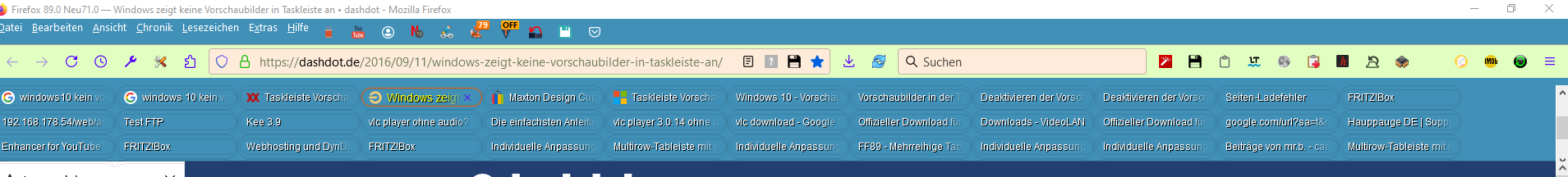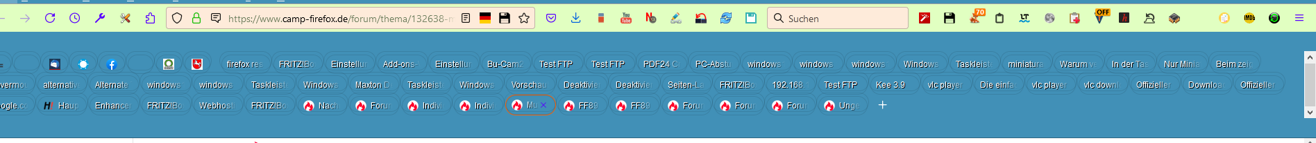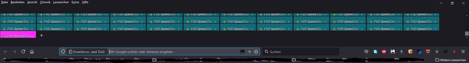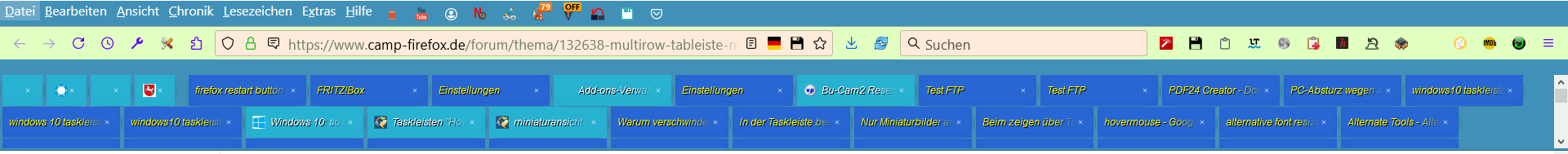 Tableiste soll mehrzeilig und unterhalb der Adresszeile sein. Seit letztem UPdate funktioniert der Scollbalken nicht mehr, d.h. der Tabbalken bleibt immer gleich hoch.