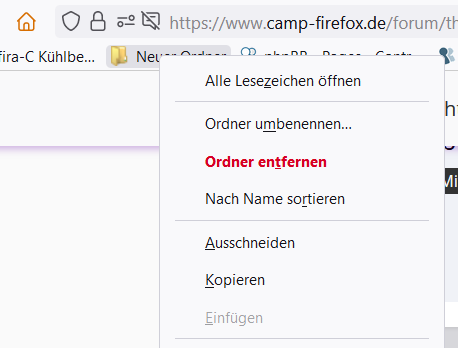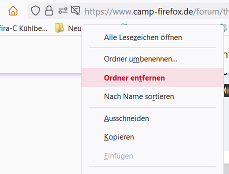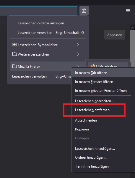 Im Kontext Menü für Lesezeichen finde ich keine LÖSCHEN Funktion mehr.