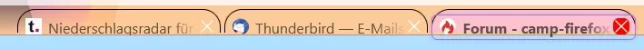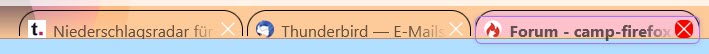 Beim aktiven Tab habe ich jetzt einen Doppelrahmen, nach unten verschoben, und bei allen Tabs sind die Schrift, der Schließen-Button etc. nicht mehr mittig bez. der Höhe. Außerdem sind die Tabs nicht mehr mittig (bez. der Höhe) in der Tableiste.