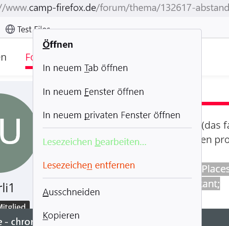 ich finde es sehr ungünstig, dass in diesem neuen Kontextmenü der Begriff "Eigenschaften" durch "Lesezeichen bearbeiten..." ersetzt wurde und jetzt direkt vor "Lesezeichen entfernen" steht, wodurch man bei anstrengender Arbeit schon mal versehentlich "entfernen" anklicken kann (blöd wird's, wenn man dann nicht sofort Strg+Z drückt). ![]()