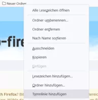 Seit Update auf Firefox 89 habe ich Probleme mit den Trennlinien in Lesezeichen. Sie lassen sich mit der Maus kaum noch bewegen, bzw per Drag & Drop verschieben. Meist kommt nur ein Sperrsymbol. Wenn man sie mal erwischt und wieder losläßt verschwinden sie und tauchen oben oben wieder auf. Zieht man Lesezeichen auf eine Trennlinie, verschwinden sie ebenfalls und tauchen oben auf, allerdings nicht ganz oben. Da ich die Trennlinien ständig verschiebe weiß ich das es erst seit dem Update so ist. Auch ohne Verwendung der userChrome.css. Ich würde das gerne wieder ändern