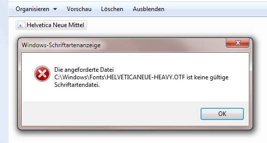 • Die Meldung ist ein Problem mit dem veralteten Windows 7, Windows 8/10 können OTF anzeigen.