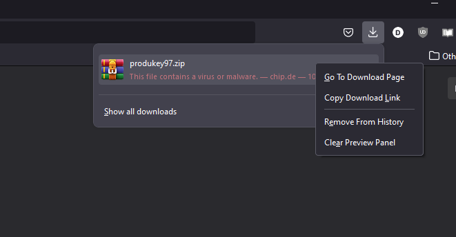 Der Download wurde nicht weiter ausgeführt, weil Firefox es als Virus einstufte.