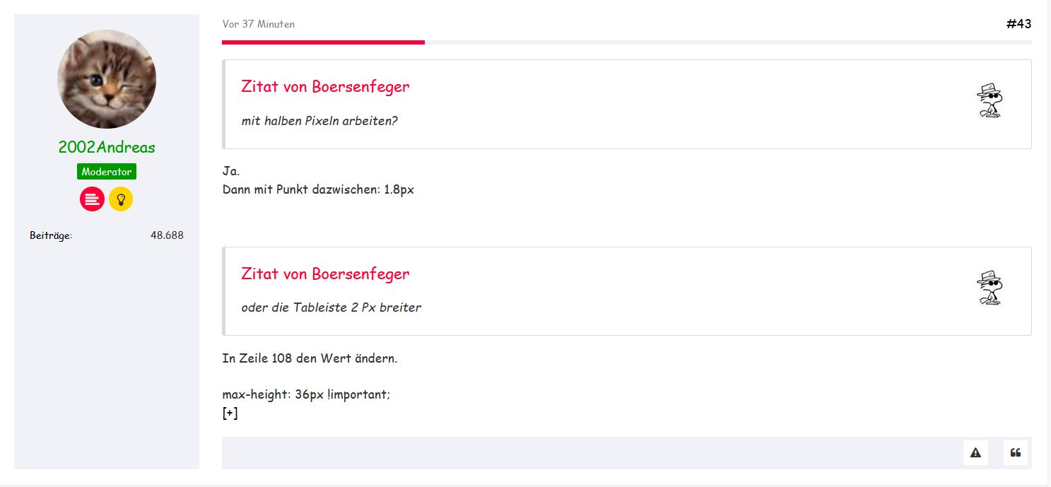 Jetzt fehlt es unten... oder die Tableiste 2 Px breiter.... ![]()