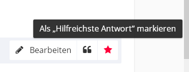 Auf "Bearbeiten" sollst du ja nicht klicken. Und natürlich kannst du nur Beiträge in den Themen als hilfreichste Antwort markieren, die von dir erstellt worden sind. Denn du kannst ja nicht für den Themenersteller sprechen, was ihm / ihr am meisten geholfen hat. Dieses Thema hier ist nicht von dir, ergo keine Option.