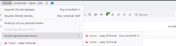 Dritter Versuch, dabei war statt eines Browserfensters mit Tabs das "Bibliothek"-Fenster aktiv. Ergebnis: gar keine Reaktion.
