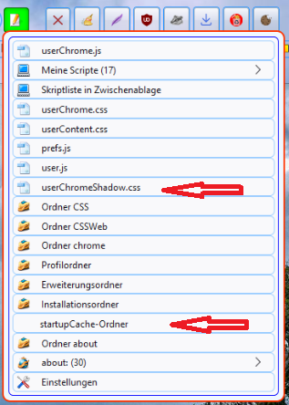 2002Andreas hat zusätzlich noch ein Script für die einfache, direkte Zugriffsmöglichkeit auf die Datei 'userChromeShadow.css' geschrieben.