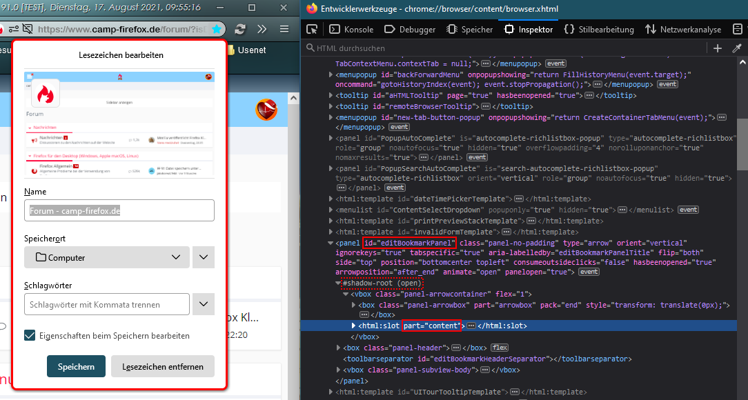 Um folgende markierte Elemente geht es z.B. bei dem obigen Beispiel mit dem Rahmen um den 'Lesezeichen hinzufügen'-Panel: