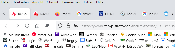 • Uuups... Dann müßte ja irgendetwas anderes die Ursache sein... Ich hatte ein anderes Theme gewählt, dass aber auch schon wieder rückgängig gemacht - ohne Erfolg. Auch Tree Style Tab hatte ich schon deaktiviert - ebenfalls ohne Erfolg. Werde mal nacheinander die anderen add-ons abschalten (FormHistoryControl, Pagezipper, Forecastfox) und schauen.