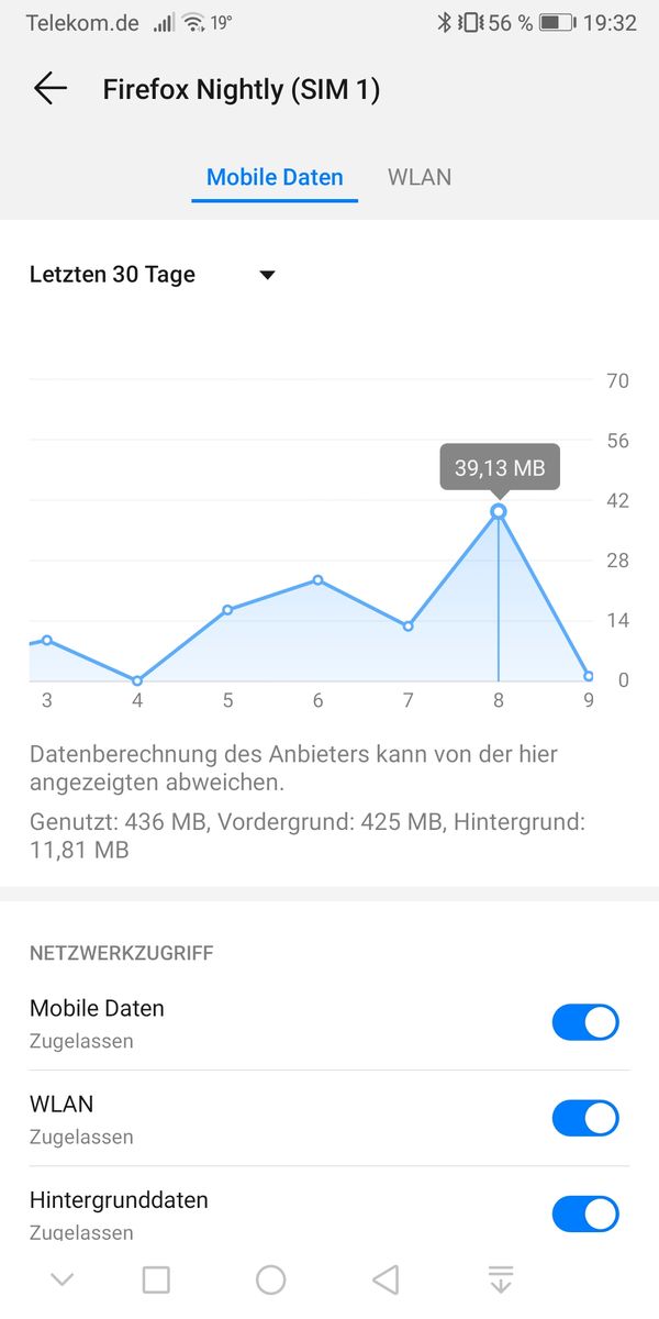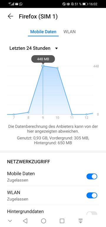 Ich habe gerade festgestellt, dass FF innerhalb von 4 Stunden, in denen er im mobilen Datennetz war, an 690MB Hintergrunddaten verbraucht hat. Wie kann das sein, 6 offenen Tabs mit Seiten, die datentechnisch eher nicht groß aufgezogen sind? Bin ich da zu "naiv"?