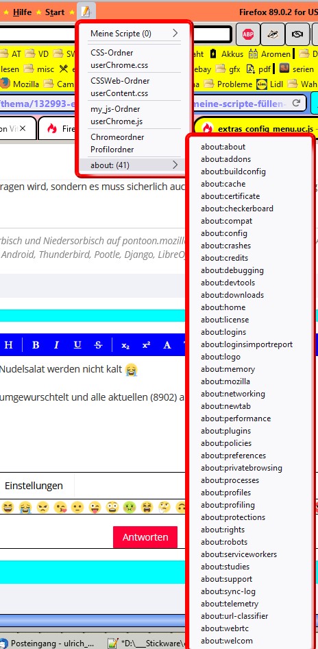 Achja, die anderen 7 Einträge funktionuckeln - about:.... ergänze ich später nach und nach...
