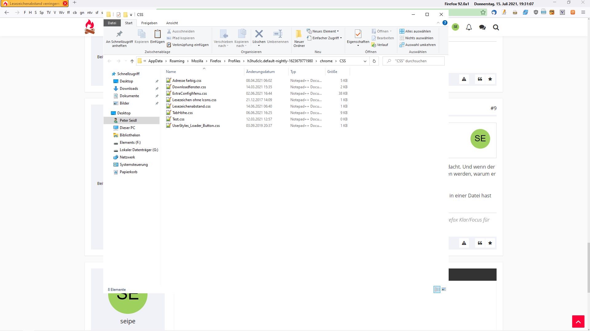 OK. Sicherheitshalber die Frage: Der dazugehörige @import-Befehl ist in der userChrome.css? Oder hast du ihn eventuell testweise mal auskommentiert?