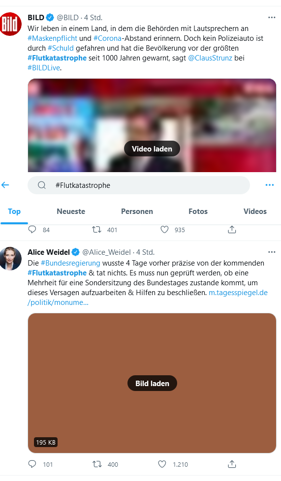 Das Problem ist folgendes: wenn ich twitter extern mitlese, sehe ich alles wunderbar. Bin ich eingeloggt, muss ich extra auf Videos/Fotos klicken, damit sie klar angezeigt werden