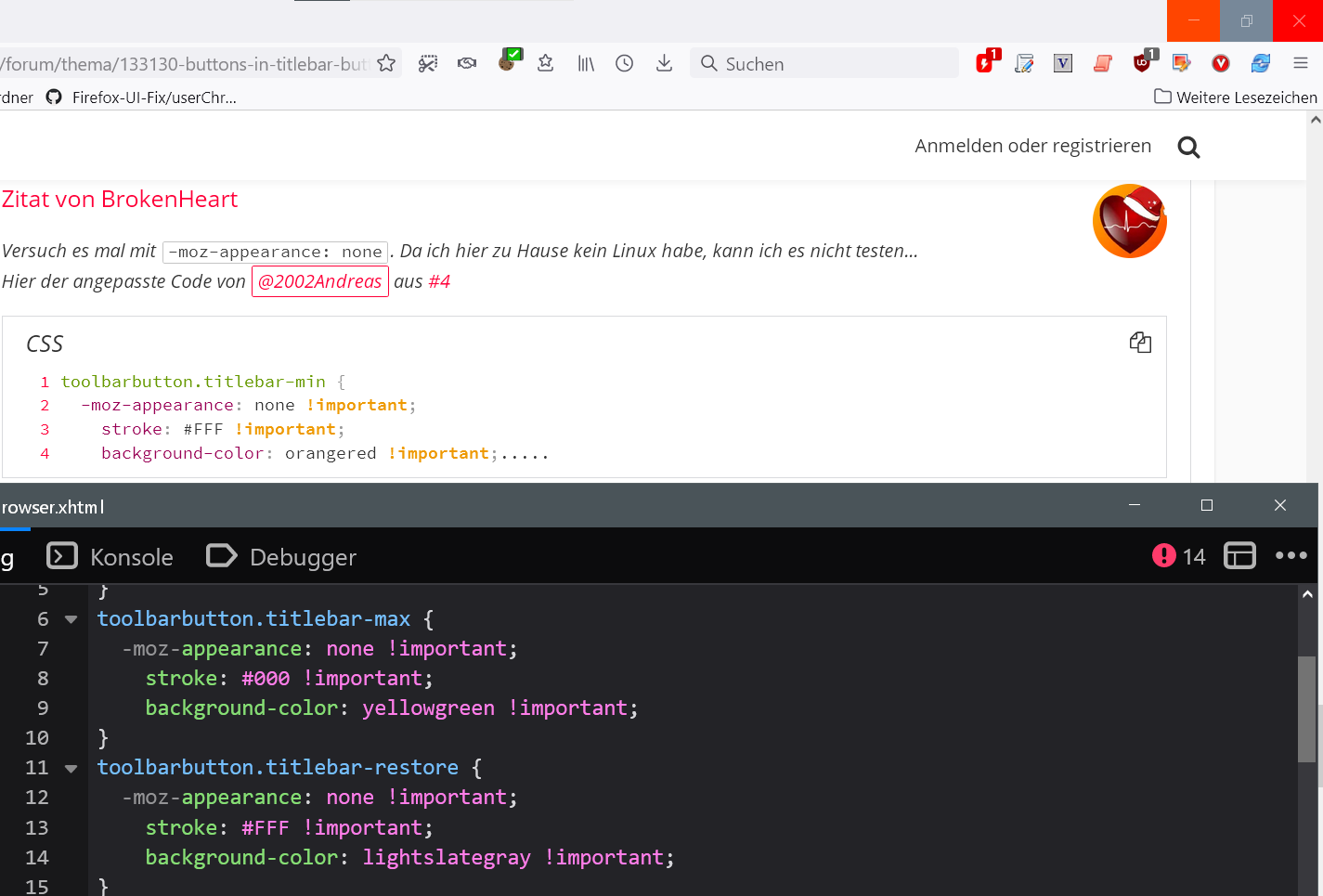 dem "titlebar-buttonbox-container" konnte ich zwar einen Hintergrund und Rahmen geben (siehe Bild),