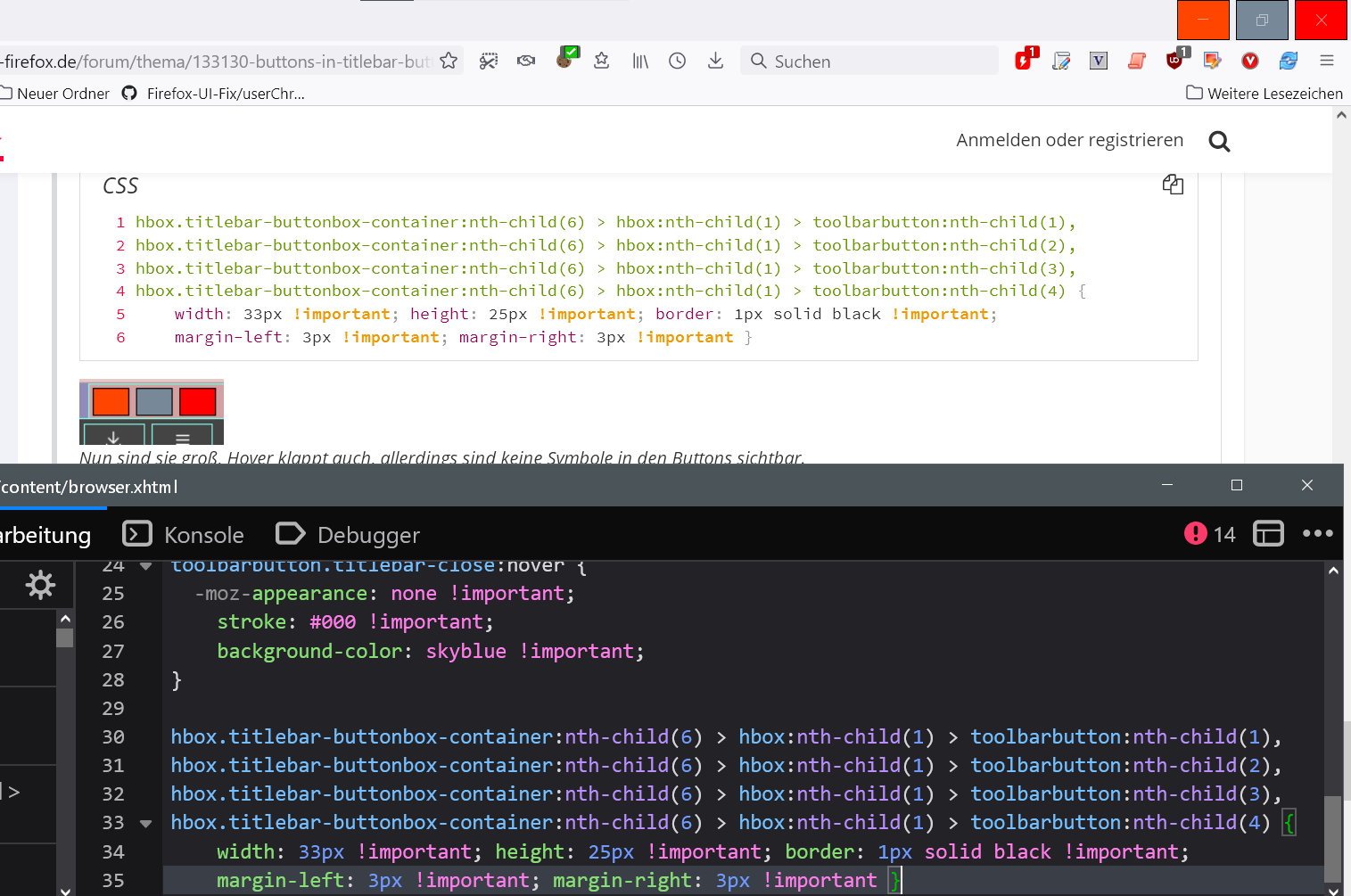 Bis jetzt konnte ich damit leben, aber seit Firefox 91 sind die Buttons (bei Hover) plötzlich rund,