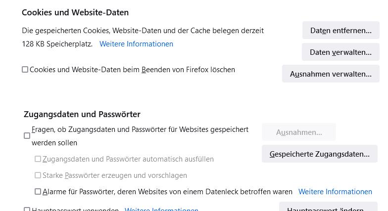 Sehe nur Auswirkungen, so werden auf einmal keine PW mehr ausgefüllt, bei Neustart sind Cookies nicht gelöscht.