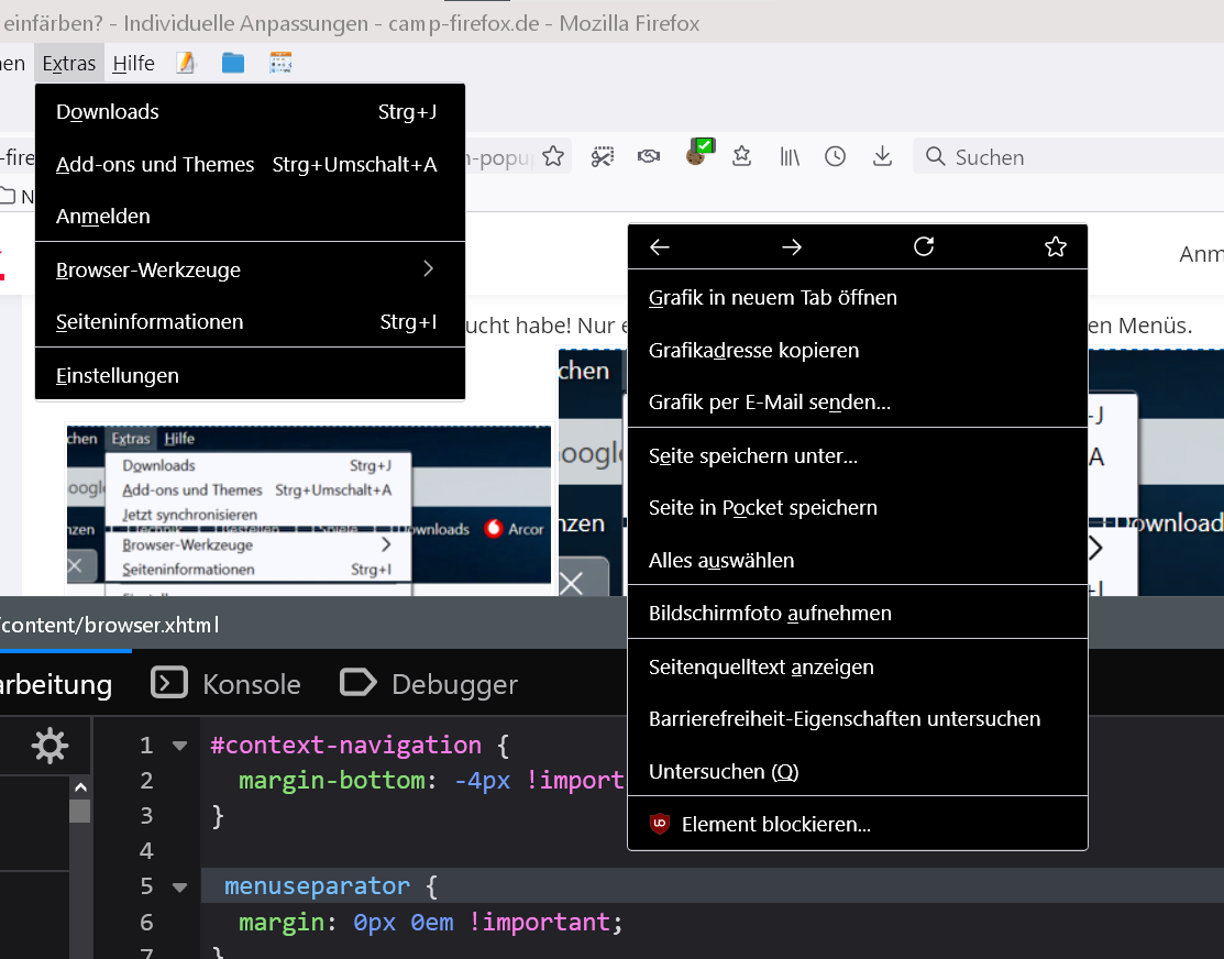 Gibt es die Möglichkeit, per CSS den Hintergrund in Popup- und Kontextmenüs einzufärben? Andere Themes habe ich probiert, gefallen mir aber alle nicht.