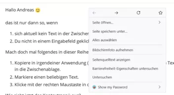 Zuerst einen Text Abschnitt in die Zwischenablage kopieren,