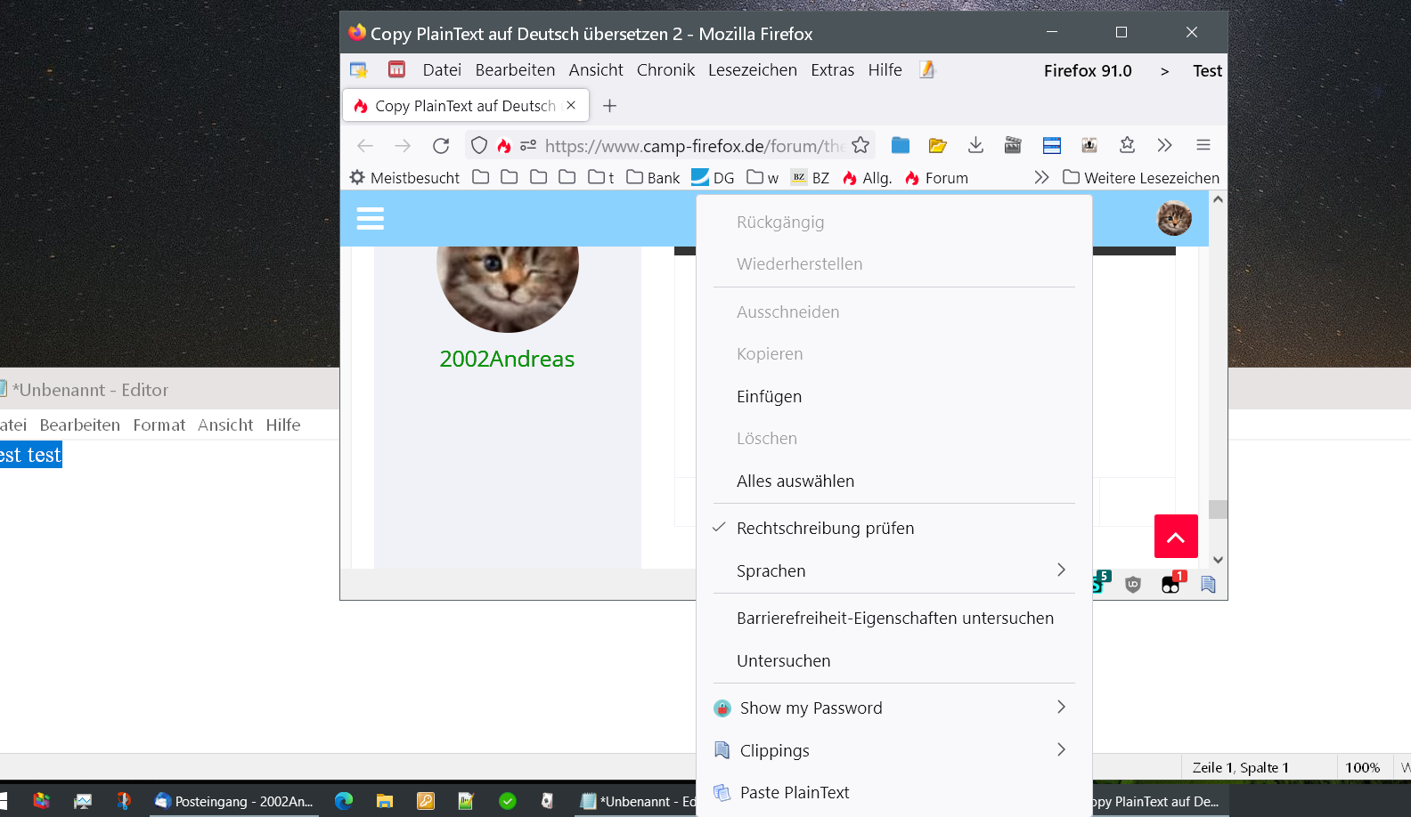 (Vorher habe ich Text in die Zwischenablage kopiert)