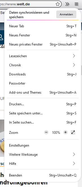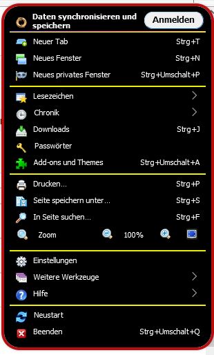 Hamburger Menü in Firefox Version 91