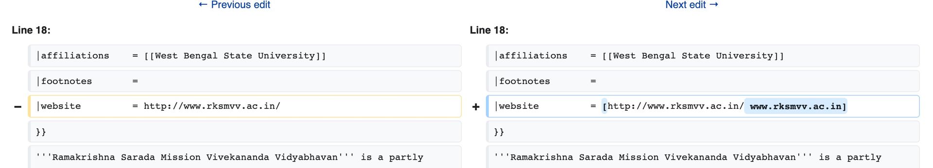 • Wenn ich bei Wikipedia etwas ändere, sehe ich fast gar nicht mehr die Änderungen zu vorherigen Version