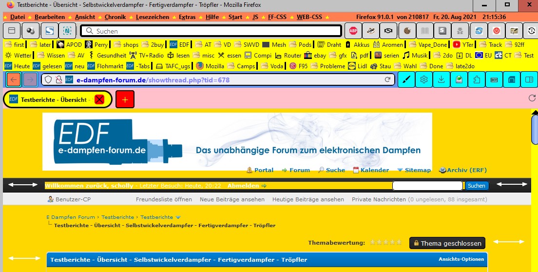 Ich versuche etwas verzweifelt, im EDF ("e-dampfen-forum.de") wieder etwas für mich aufzuhübschen.