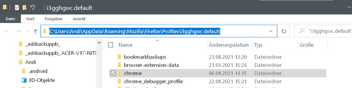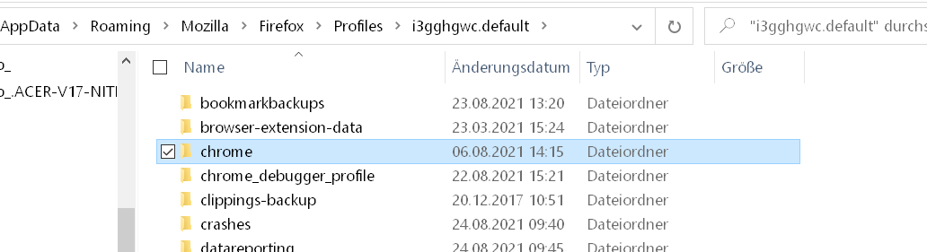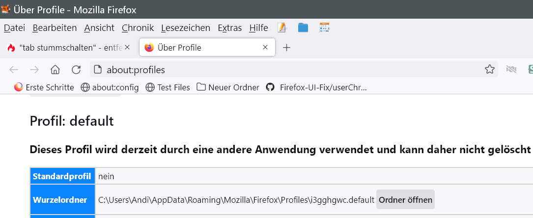 Und dieser Ordner ist jetzt wo genau? Du hast, anders als im Beitrag eben, die korrekte Groß-Kleinschreibung beachtet*? Firefox wurde anschließend neu gestartet?