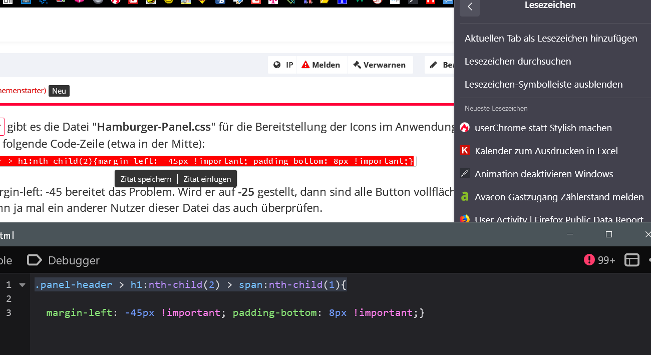 Vor langer Zeit hatten wir dieses schon mal angesprochen, aber der Fehler (behaupte ich jetzt mal) liegt immer noch an. Gibt es da eine Möglichkeit das zu ändern, oder sollte da Mozilla ran?