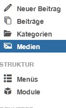 Joomla-Kontrollzentrum (Ausschnitt) mit und ohne Haken