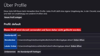 Dieses Profil wird derzeit verwendet und kann daher nicht gelöscht werden.