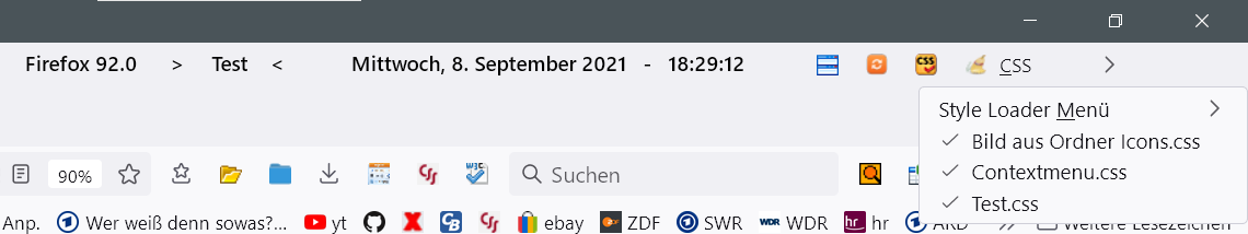 Bei mir wird die Uhr nicht angezeigt und der UserCSSLoader lädt nicht. Ebensowenig wird der Restartbutton geladen.