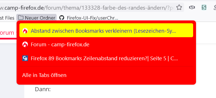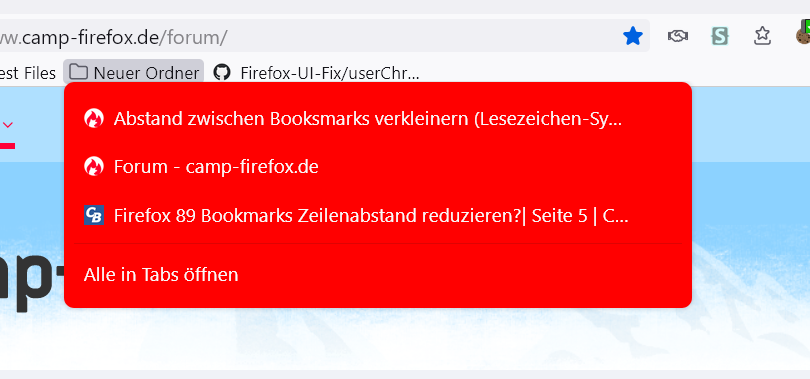 Seit Firefox 92 haben die geöffneten Ordner der Lesezeichen-Symbolleiste einen weißen Hintergrund.