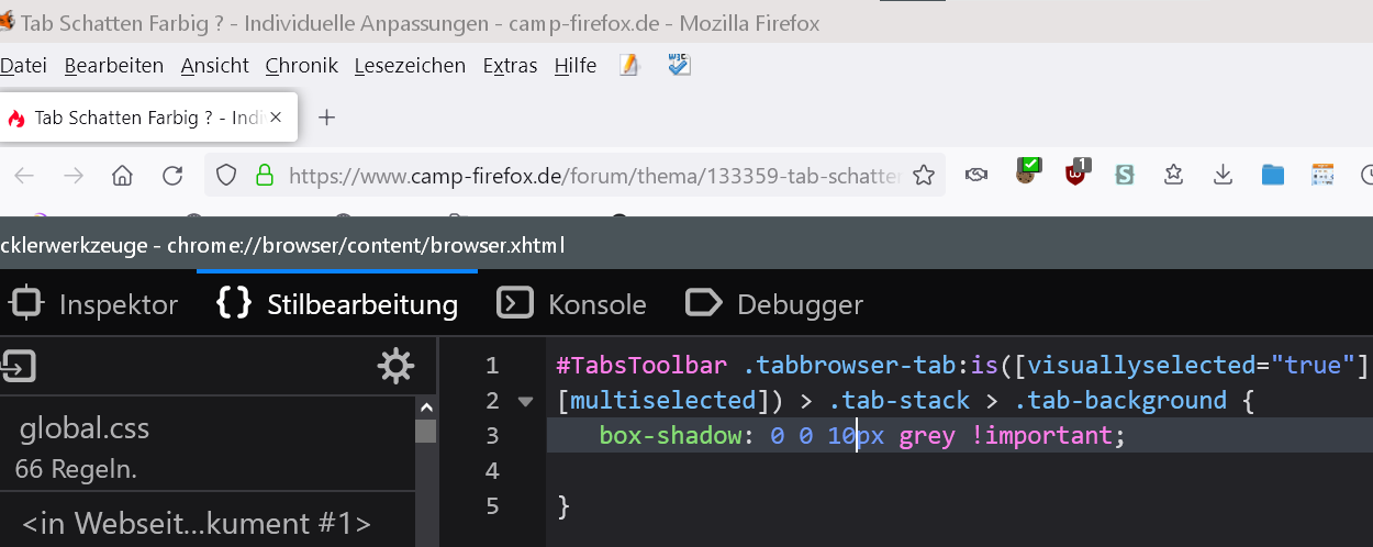 Tab Schatten Farbig ?