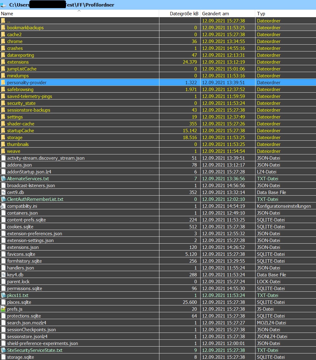 Anhand des Datums kann ich auch sehen, dass der Ordner personality-provider und auch alle darin befindlichen Dateien angelegt wurden, zu dem Datum, als ich Firefox 92 neulich manuell ein Update durchführte und seitdem auch nicht verändert wurden.