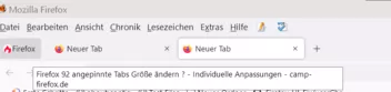 Hm, Dein Screenshot aus #5 sagt was anderes, denn anscheinend wird der Tabtext bei der Anpassung der Breite des angepinnten Tabs doch eingeblendet, so war es auch bei mir, deshalb die Anpassung.