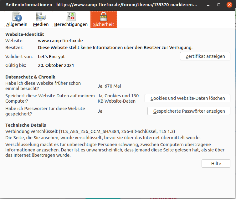 Gibt es eine Möglichkeit sich das Zertifikat einer Webseite mit Firefox für Android anzeigen zu lassen?