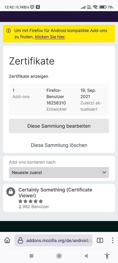 Wenn du Probleme hast und Hilfe benötigst, musst du sagen, wo genau du nicht weiterkommst. Ich sehe nur in deinem Screenshot in Beitrag #4, dass du dir die Sammlung auf addons.mozilla.org mit deinem Smartphone ansiehst, aber die Installation der Erweiterung erfolgt wie gesagt nicht über die Website. Gehe also bitte genau so wie in der verlinkten Anleitung beschrieben vor und melde dich, wenn ein Punkt nicht funktioniert oder unklar ist.