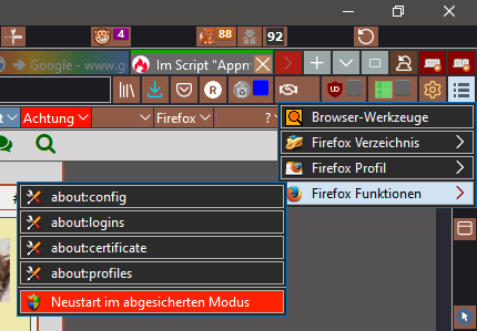 Einige weitere about*-Einträge habe ich schon hinzugefügt, ging problemlos, aber andere habe ich noch nicht hinbekommen, kannst Du mir die Teileinträge für die Browser-Konsole und Firefox synchronisieren als Beispiele zukommen lassen?