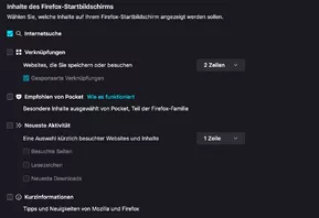• Mit der Einstellung auf "Firefox-Startseite (Standard)"